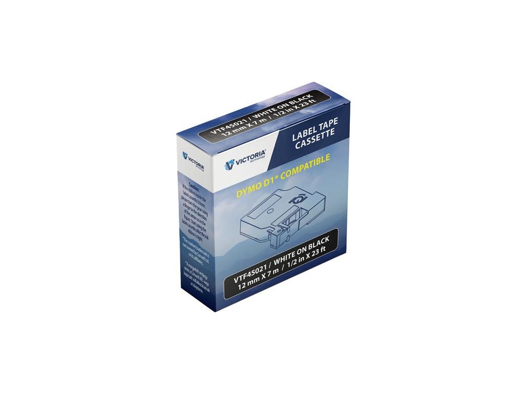 Páska do štítkovača 12 mm x 7 m, kompatibilita: DYMO D1, VICTORIA TECHNOLOGY, čierna-biela