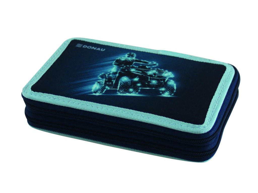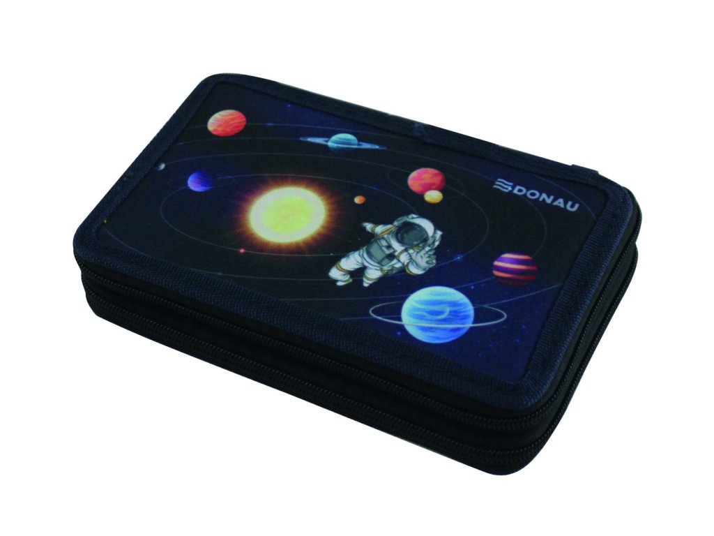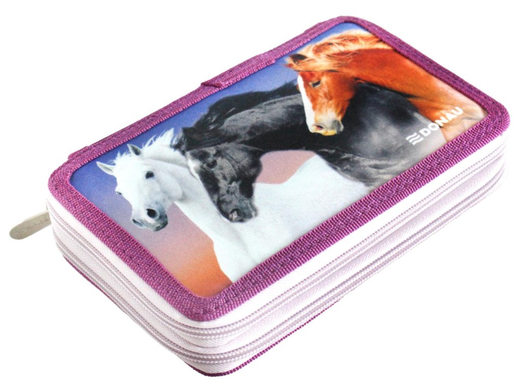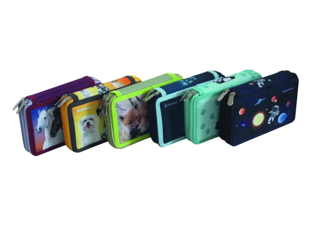Peračník 2-zipsový s výbavou, v 6 rôznych dizajnoch. S praktickým vnútorným vreckom na drobnosti, vyrobený z odolného polyesterového materiálu. Výbava (23 dielov): 1 guma, 1 strúhadlo, 3 ceruzky, 1 pravítko, 1 rozvrh hodín, 8 fixiek, 8 farebných ceruziek. Rozmery: Š x V x H: 200 x 40 x 130 mm.Materiál: polyester