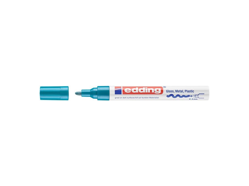 vhodný takmer na všetky povrchy (sklo, kov, porcelán, plast) kuželový hrot kovové telo vode a svetlu odolný, nezotierateľný rýchloschnúci atrament vhodné aj na zašpinené povrchy rovnomerné dávkovanie atramentu farba uzáveru sa zhoduje s farbou náplne hrúbka písma: 2–4 mm Značka: EDDING Výrobca: EDDING INTERNATIONAL GMBH Adresa: Bookkoppel 7, 22926 Ahrensburg, Germany Web: www.edding.com Email: info@edding.comDodatočné parametre