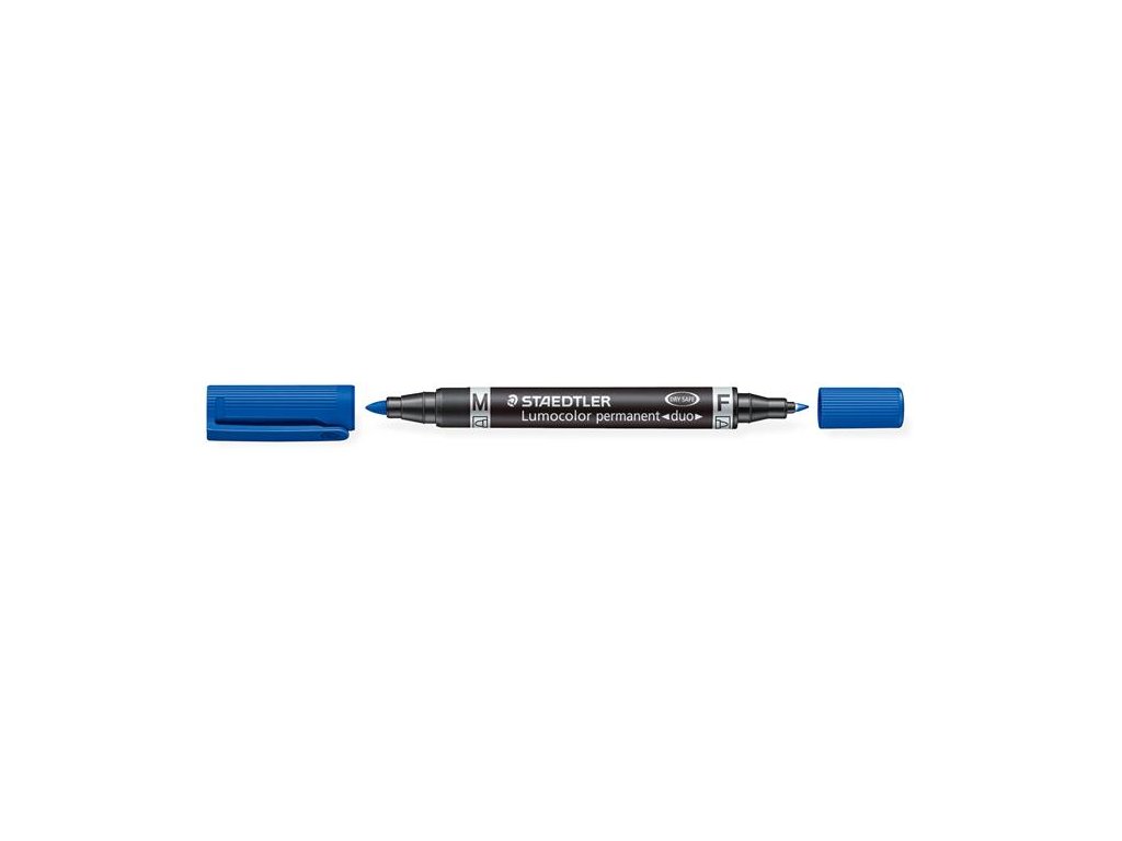 Permanentný popisovač, F/M, 0,6/1,5 mm, kužeľový hrot, s 2 hrotmi, STAEDTLER "Lumocolor Duo", modrý