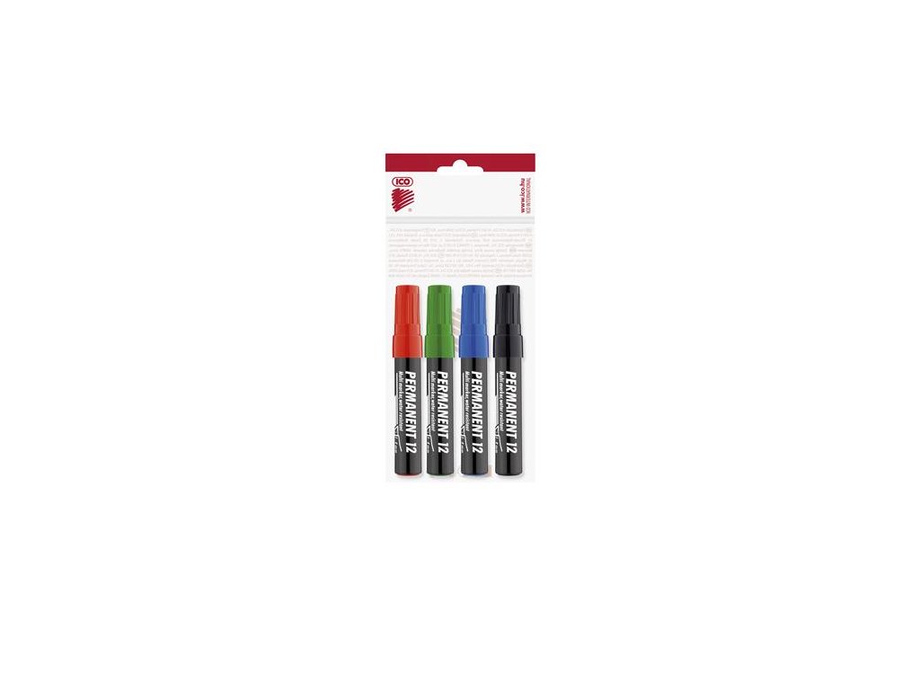 Permanentný popisovač, sada, 1-4 mm, zrezaný hrot, ICO "Permanent 12", 4 rôzne farby