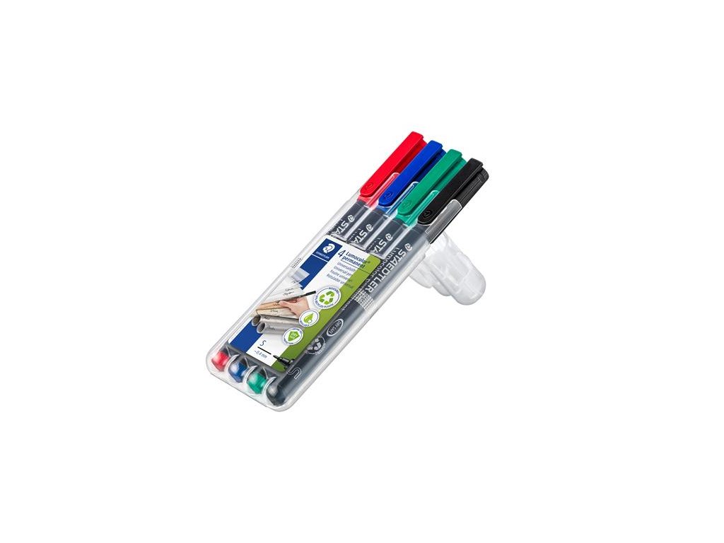 vhodný na fólie do projektorov, CD, sklo, kov a plast polypropylénové telo uzáver vo farbe atramentu vodeodolné, nerozmaže sa rýchlo schne, vhodný aj pre ľavákov bez uzáveru nevyschne niekoľko dní atrament na báze alkoholu hrúbka písma: 0,4 mm Značka: STAEDTLER Výrobca: STAEDTLER SE Adresa: Moosäckerstr. 3 , 90427 Nuremberg, Germany Web: http://www.staedtler.com Email: https://www.staedtler.com/intl/en/service/contact/Dodatočné parametre