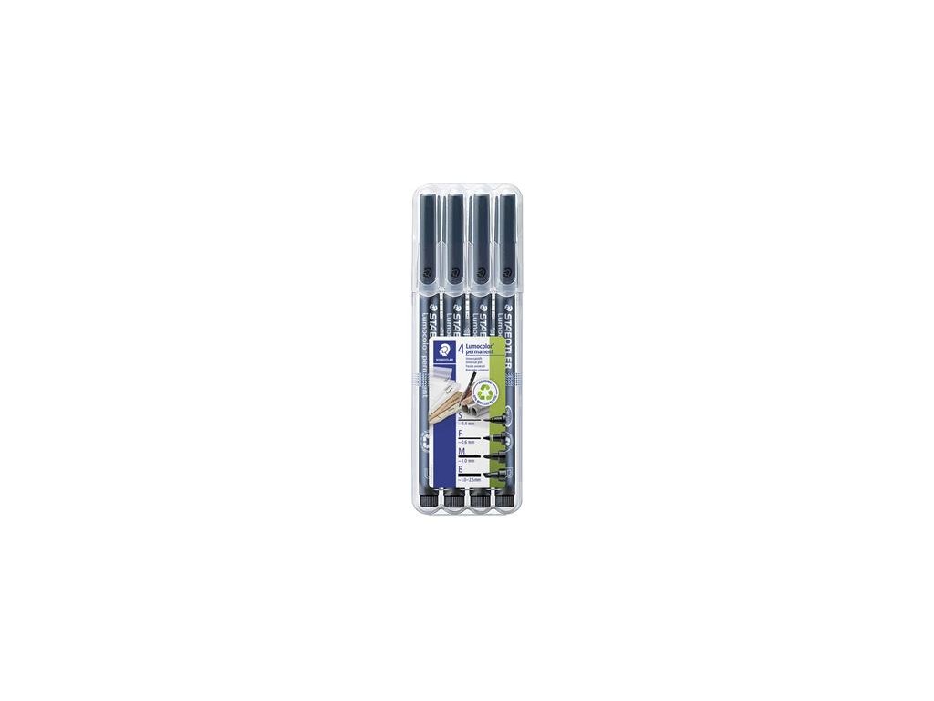 Permanentné popisovače radu Lumocolor poskytujú skutočne intenzívne farby na trvalé značenie prakticky na akomkoľvek povrchu. -univerzálne, na použitie na takmer akomkoľvek povrchu -ideálne na pretlačové fólie -odolný voči vode na takmer všetkých povrchoch, nerozmazáva sa -zasychá v priebehu niekoľkých sekúnd, preto sa odporúča aj pre ľavákov -trvanlivý atrament na báze alkoholu -ľahká vôňa -čierna farba je odolná voči lesku -telo a uzáver pera z PP zaručujú dlhú životnosť - "Dry Safe": bez uzáveru nevysychá niekoľko dní -Bezpečné pre lietadlá - automatická kompenzácia tlaku zabraňuje vytečeniu pera na palube lietadla -4 hrúbky písma: S (0,4 mm), F (0,6 mm), M (1 mm), B (1,0-2,5 mm) -možnosť opätovného naplnenia -možno dodať v škatuľke STAEDTLER Značka: STAEDTLER Výrobca: STAEDTLER SE Adresa: Moosäckerstr. 3 , 90427 Nuremberg, Germany Web: http://www.staedtler.com Email: https://www.staedtler.com/intl/en/service/contact/Dodatočné parametre