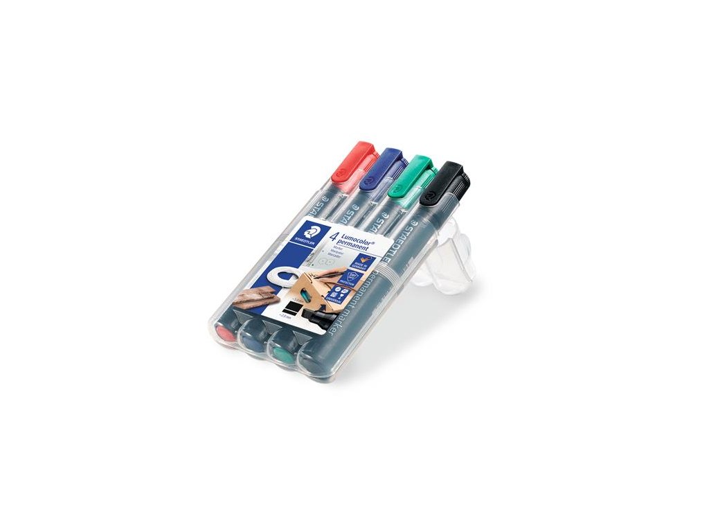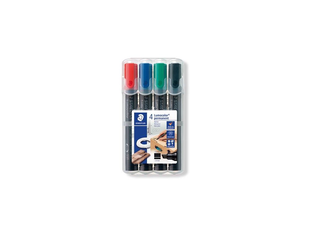 Permanentný popisovač, sada, zrezaný hrot, STAEDTLER "Lumocolor 350", 4 rôzne farby
