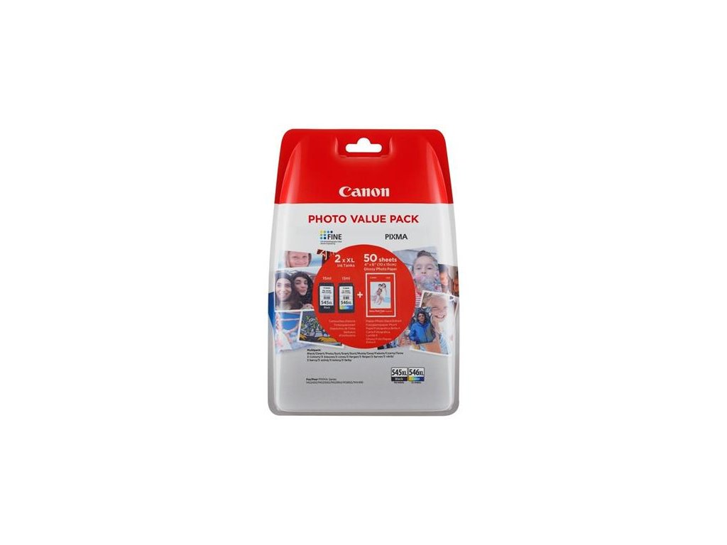PG-545XL/CL546XL náplň multipack k tlačiarňam Pixma MG2450, 2550, CANON, b+c + GP501 (50 strán 10x15) papier