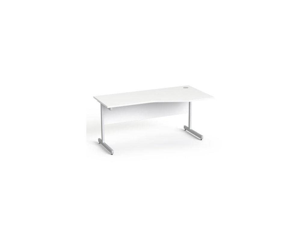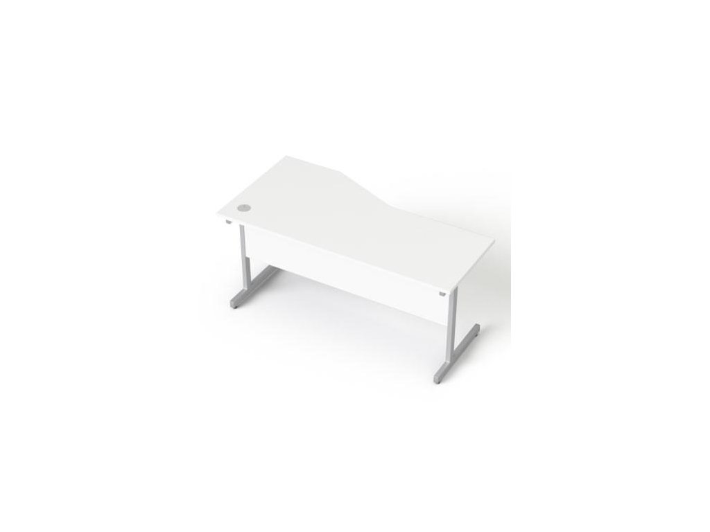 Písací stôl, oblúkový, pravý, so sivými kovovými nohami, 160 × 80 cm, MAYAH „Freedom SV-29“, biela