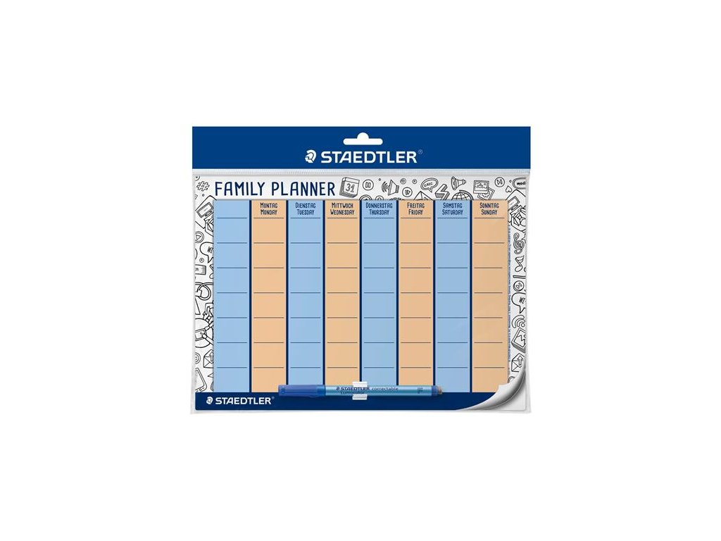 ideálna na rodinné alebo spoločné plánovanie znova použiteľné samolepiaca, vhodná na rovné, suché povrchy za sucha zotierateľná formát: DIN A4 (297 x 210 mm) Značka: STAEDTLER Výrobca: STAEDTLER SE Adresa: Moosäckerstr. 3 , 90427 Nuremberg, Germany Web: http://www.staedtler.com Email: https://www.staedtler.com/intl/en/service/contact/Dodatočné parametre