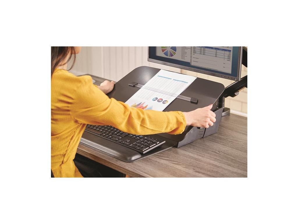 Pomáha pri správnom držaní tela 5 možností nastavenia výšky Plošina sa ľahko posúva dopredu a zaberá menej miesta na stole Má skrytý zásobník Obsahuje magnetický úchyt Štýlový kovový dizajn Rozmery produktu: 115,9 x 562 x 349,3 mm Hmotnosť: 6,35 kgDodatočné parametre