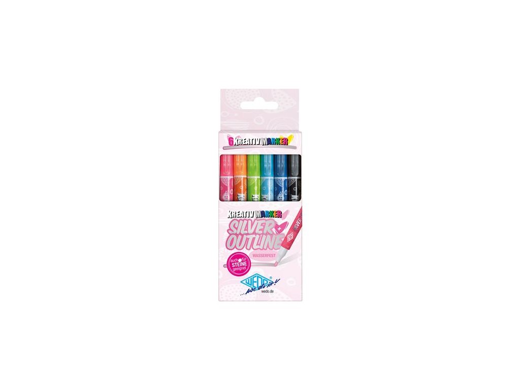 Popisovač, sada, 1-2 mm, metalická strieborná, WEDO, so 6 rôznymi farebnými kontúrami