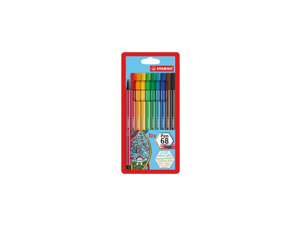 Popisovač, sada, 1 mm, STABILO "Pen 68", 10 rôznych farieb