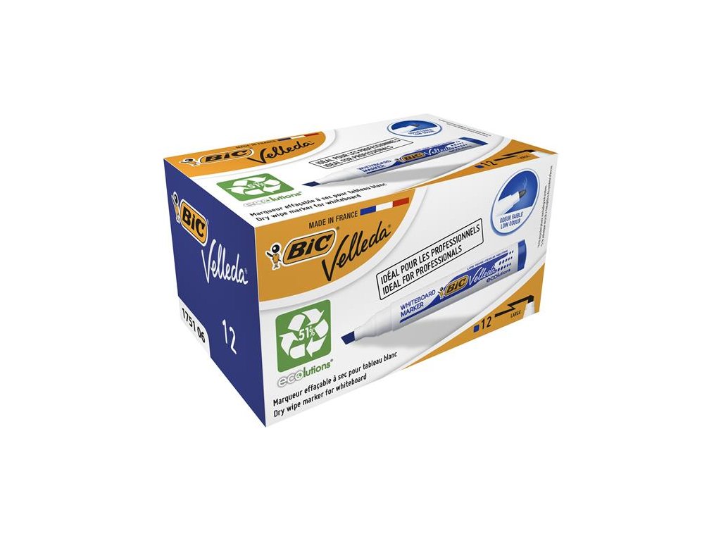 Popisovač na biele a flipchartové tabule, 1,1-5,6 mm, zrezaný hrot, BIC "Velleda ecolutions", modrý