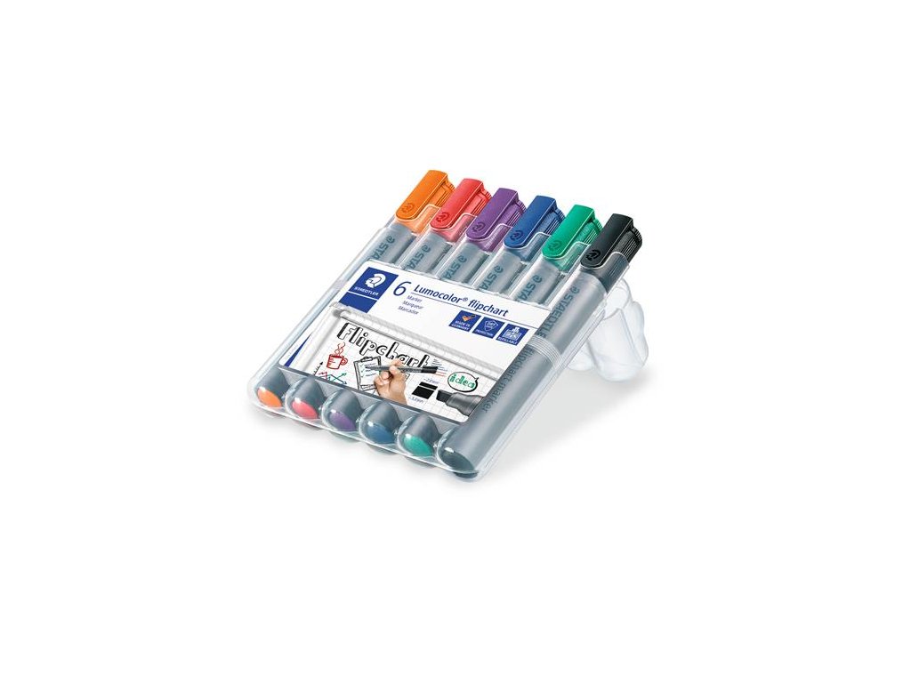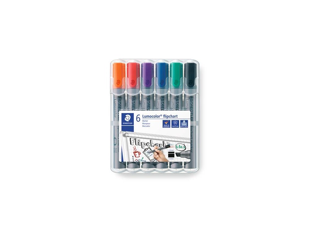 Popisovač na flipchartové tabule, 2-5 mm, zrezaný, STAEDTLER "Lumocolor 356 B", 6 rôznych farieb