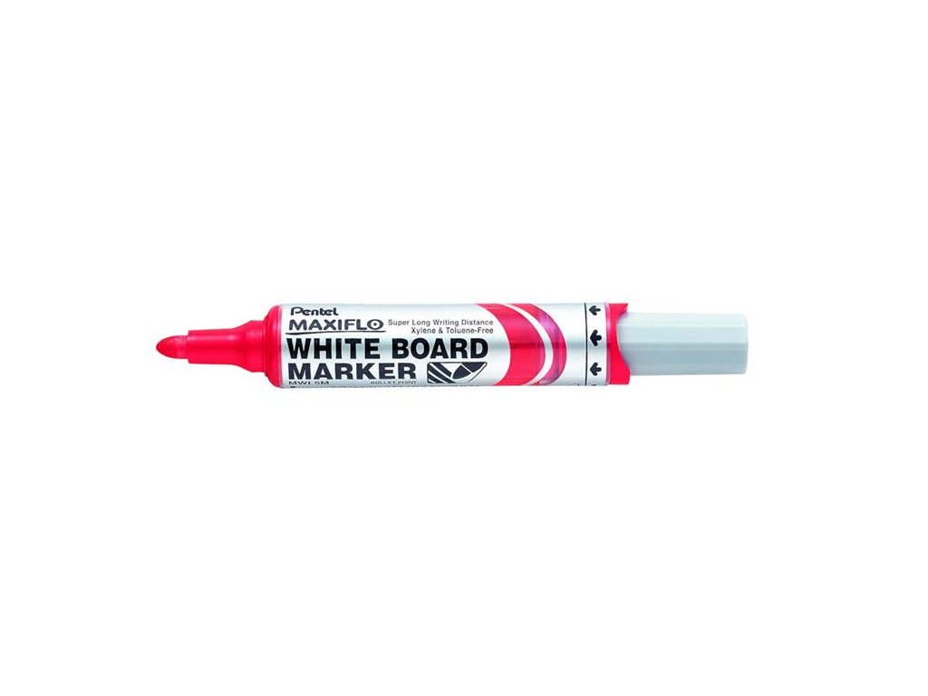Popisovač na tabule, 2,5 mm, kužeľový hrot, PENTEL "Maxiflo MWL5M", červená