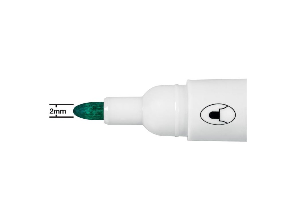 Popisovače Glide na biele tabule je možné použiť na sklenené a smaltované tabule a iné za sucha stierateľné nepórovité povrchy. - vhodné na väčšinu neporéznych, za sucha stierateľných povrchov, napr. na sklenené, smaltované alebo melamínové tabule - ľahká vôňa - rýchloschnúci atrament - ideálny pre školy, kancelárie a domácnosti - hrúbka čiary: 2 mm - prevedenie hrotu: kužeľovité - balenie: 10 ks/bal - farba: zelená Značka: NOBO Výrobca: Esselte Kft. Adresa: 1139 Budapest, Lomb u. 37-39. A ép. II. 8., Hungary Web: https://www.accobrands.com/brands/ Email: hungarymarketing@acco.comDodatočné parametre