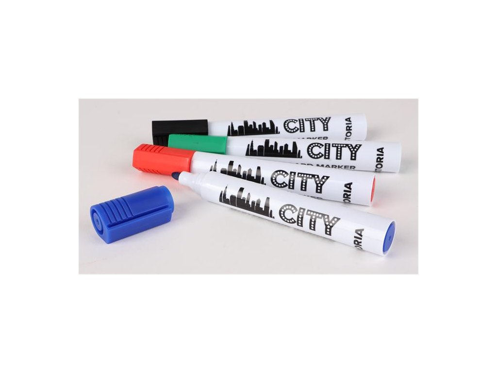 Popisovač na tabule, sada, 1-3 mm, kužeľový hrot, VICTORIA VISUAL "City", 4 rôzne farby