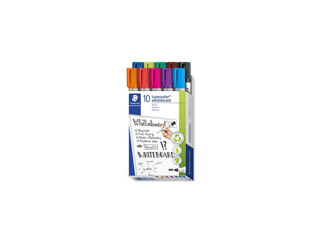 Popisovač na tabule, sada, 2mm, kužeľovitý,STAEDTLER "Lumocolor 351", 10 rôznych farieb