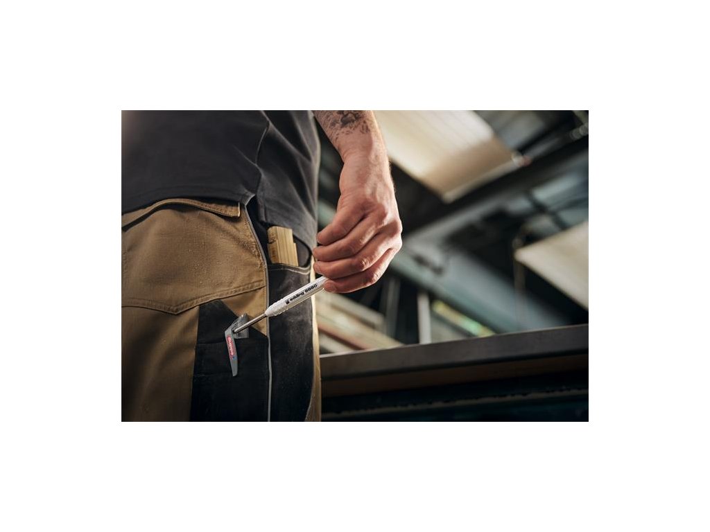 - vďaka dlhému (42 mm) a tenkému (5,5 mm) hrotu možno popisovač použiť aj na úzkych alebo iných ťažko dostupných miestach, napr. na značenie otvorov alebo rezných hrán