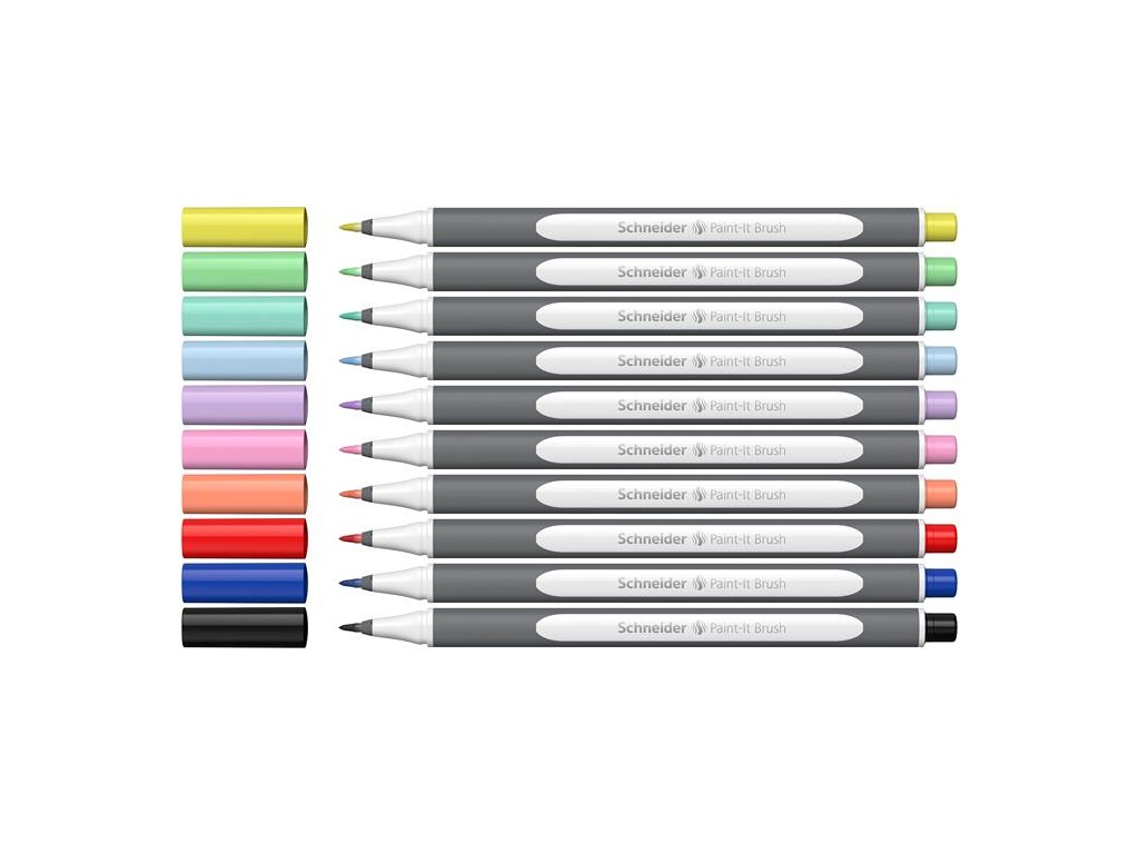 Popisovač v tvare štetca, sada, s ohybným hrotom, SCHNEIDER "Paint-It 070", 10 rôznych farieb