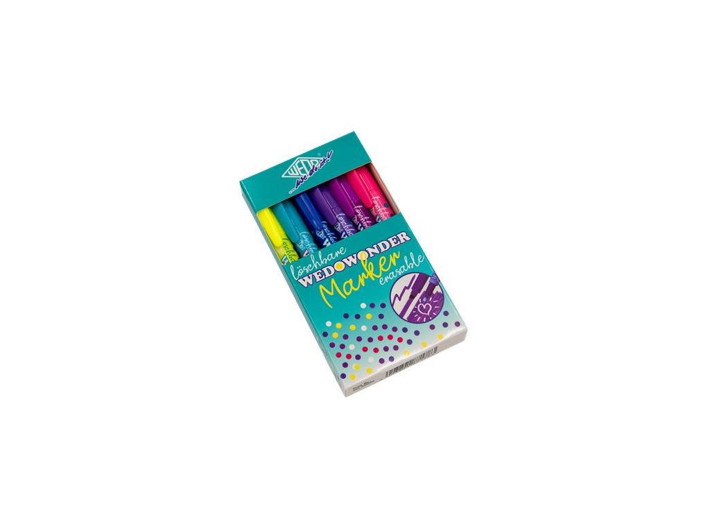 S popisovačmi WEDO Wonder farba zázračne zmizne... - obojstranný popisovač - zmazateľný - hrúbka čiary: 2-3 mm - žltá, ružová, fialová, fialová, modrá, tyrkysováDodatočné parametre