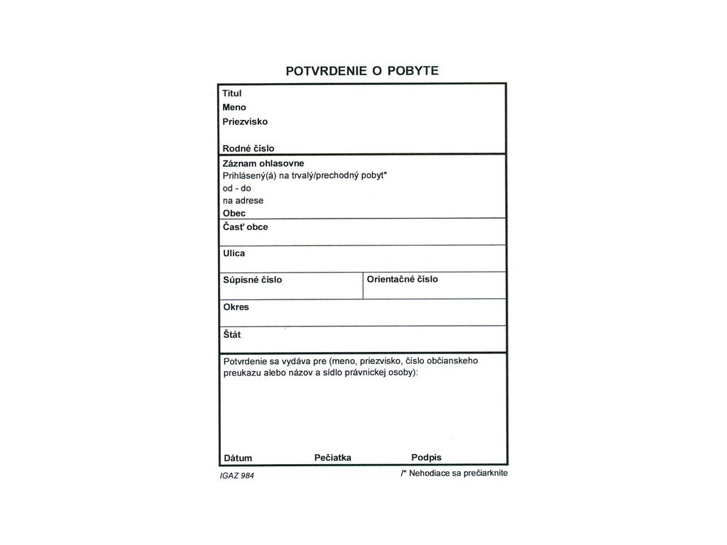 Potvrdenie o pobyte A6