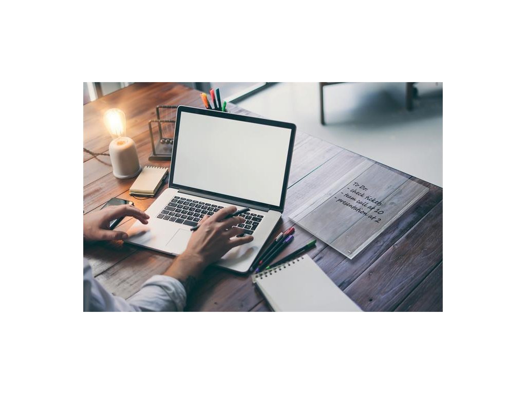 Prenosná akrylová tabuľka je naklonená pomocou štýlových priechodných držiakov, aby poskytovala optimálnu polohu na písanie. Úhľadne sa zmestí na akýkoľvek stôl alebo pracovnú plochu a vďaka priehľadnému dizajnu sa poznámková tabuľka hladko začlení do pozadia, keď sa nepoužíva.