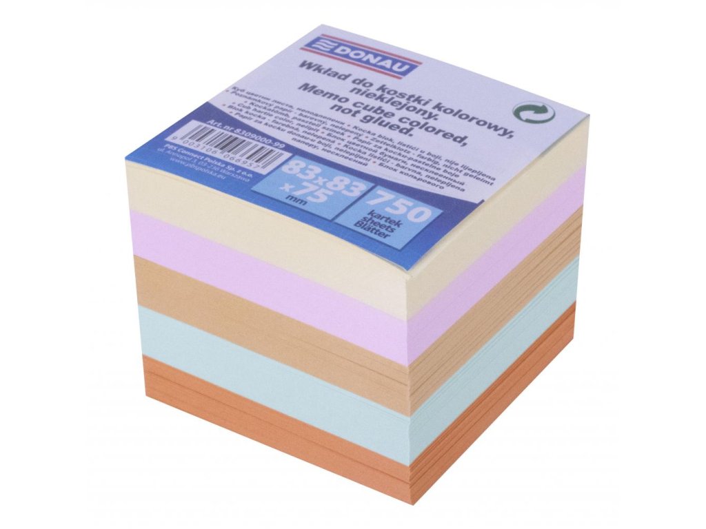 Farebné (pastelové farby) nelepené poznámkové bloky v tvare kocky. Vhodný ako samostatné poznámkové bloky alebo ako náplň do škatuľky DO491001.Rozmery 83x83x75mm.