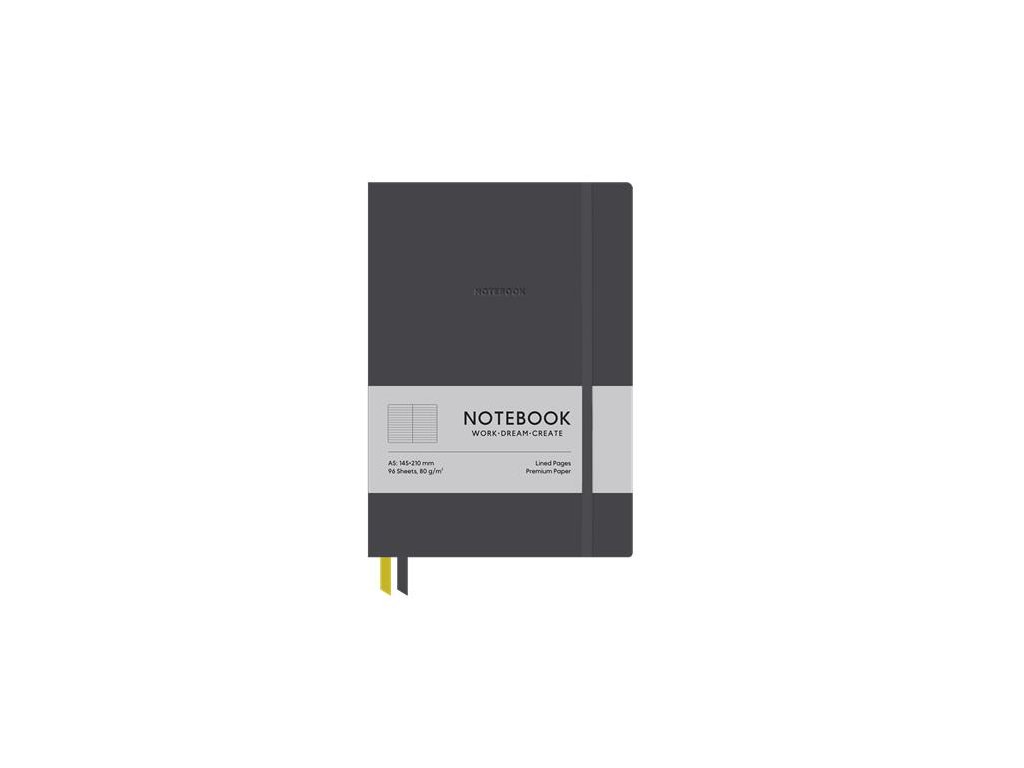 Poznámkový zošit, A5, linajkový, 96 listov, tvrdý, koženkový obal, SHKOLYARYK "Genius", tmavosivá