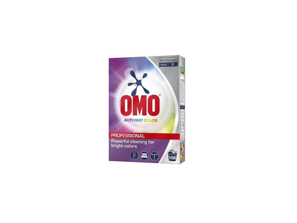 Omo Professional Color je prací prášok vyvinutý pre farebné a viacfarebné odevy. Okrem účinného čistenia a odstraňovania škvŕn pomáha zachovať farby odevov a udržiava ich žiarivé dlhšie – aj pri častom praní.– vďaka kompaktnej vylepšenej formule je efektívnejší, takže pri rovnakom počte praní (108 praní) vyžaduje menej dávkovania na jedno pranie (50 g namiesto 65 g)