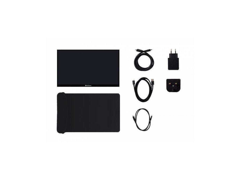 Prenosný dotykový monitor Verbatim dodáva práci alebo zábave ďalší rozmer. Môžete ho použiť ako druhú obrazovku pre váš notebook alebo poskytnúť veľký displej pre váš telefón, tablet alebo prenosný herný systém. -15,6" -1080p/Full HD -16,7 milióna farieb -plný pozorovací uhol 178 stupňov -pomer strán: 16:9 -jas: 250 cd/m2 -technológia prepínania v rovine (IPS) -technológia vysokého dynamického rozsahu (HDR) - typ panelu: 10-bodový multidotykový s technológiou G+G - vstavaný reproduktor - vstavaná podpora (0-85 stupňov) - vstupné konektory: 2xUSB-C, USB-A 2.0, HDMI - výstupný konektor: 3,5 mm audio jack -podporuje: HDR, FreeSync, Low Blue Light -pevný a odolný hliníkový obal -neoprénový ochranný kryt -hmotnosť: 1180 g -rozmery: 357,1 x 215 x 6/12 mm (min./max.) (Šírka x V x H ) Systémové požiadavky: -HDMI (vyžaduje sa napájanie, je súčasťou dodávky) -USB-C podporuje DisplayPort Alt Mode Kompatibilita OS: -Operačný systém Android -Windows 11/10/8 -Operačný systém Mac -iOS (vyžaduje sa adaptér pre zariadenia Lightning, nie je súčasťou dodávky )Dodatočné parametre