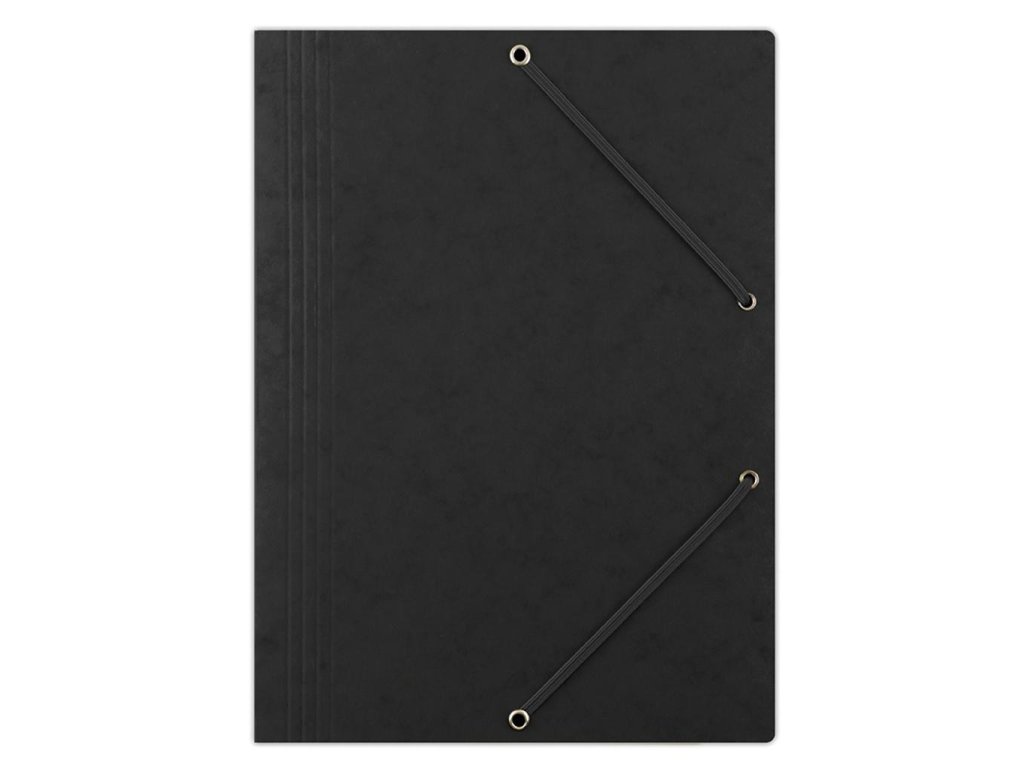 Obal A4 s tromi chlopňami a gumičkou vo farbe obalu. Materiál prešpánový kartón gramáže 390 g. Väčšie balenie 10 ks.Farba: čierna