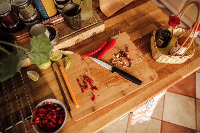 Zosilnená čepeľ pre dobré vyváženie noža a jeho pevnosť. Dodatočne leštené ostrie zvyšuje výkon čepele. Možno umývať v umývačke riadu.