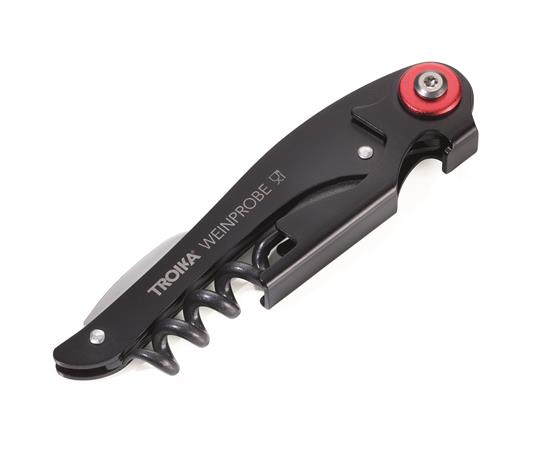Otvárač vína – sada, nôž, vákuová zátka, TROIKA, čierna-červená