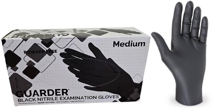 Rukavice zo syntetického nitrilového materiálu, nepudrované, odporúčané pre ľudí s pokožkou citlivou na latex a púder. -materiál: nitril (3,6gr) AQL: 1,5 -prémiová kvalita -jednorazové -nesterilné -bez prášku -bez latexu -mikrozdrsnená, zrolovaná stopka po celej ploche -dĺžka: 240 mm -možno nosiť na oboch rukách -farba: čierna -veľkosť : M - balenie: 100 ks/krabica