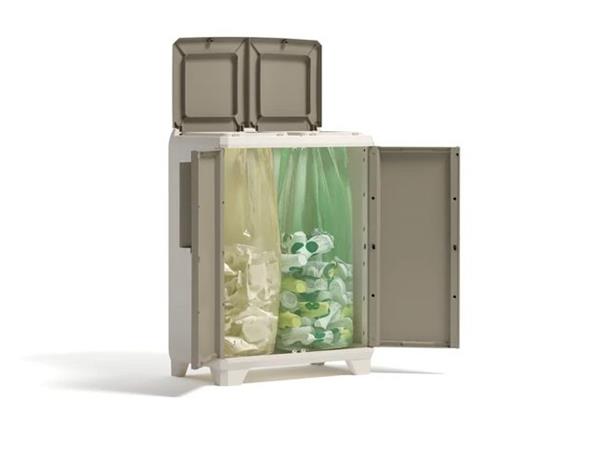 KETER Split Premium Wood štýlovo a jednoducho prispieva k ochrane životného prostredia.Svetlobéžová a žltá farba evokuje prírodné drevo, esteticky sa hodí do každého priestoru.  -vhodná na uloženie dvoch vriec s objemom do 110 litrov -vyrobená z polypropylénu, odolná voči mechanickému poškodeniu a poveternostným vplyvom, takže ju možno umiestniť v interiéri aj exteriéri, napríklad na krytej terase -ľahko sa čistí - jednoduchá montáž -vybavená dvoma hornými vekami so špeciálne tvarovanými otvormi pre jednoduché otváranie - predné dvojkrídlové dvierka s pohodlnými úchytkami - s nastaviteľnými nohami -rozmery: 39x68 x92 cm (šírka x hĺbka x výška) -hmotnosť: 6,07 kg - vrecia nie sú súčasťou balenia