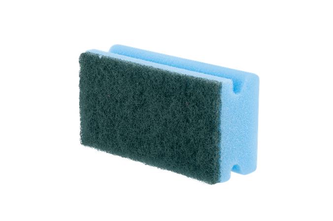 Odolná, veľká špongia s extra silným drhnúcim účinkom, navrhnutá podľa požiadaviek segmentu HoReCa. Profesionálny čistiaci nástroj so systémom farebného kódovania v súlade s normami HACCP. Certifikát FCC (Food Contact Certified), vhodná pre profesionálne použitie v reštauráciách, hoteloch, stravovacích zariadeniach, nemocniciach a verejných inštitúciách. Sivá drhnúca vrstva umožňuje šetrné odstránenie aj zaschnutých alebo namočených nečistôt bez poškriabania povrchu. Ideálna na čistenie veľkých nepriľnavých alebo teflónových povrchov. Rozmery: 135 x 71 x 45 mm. Farba: modrá