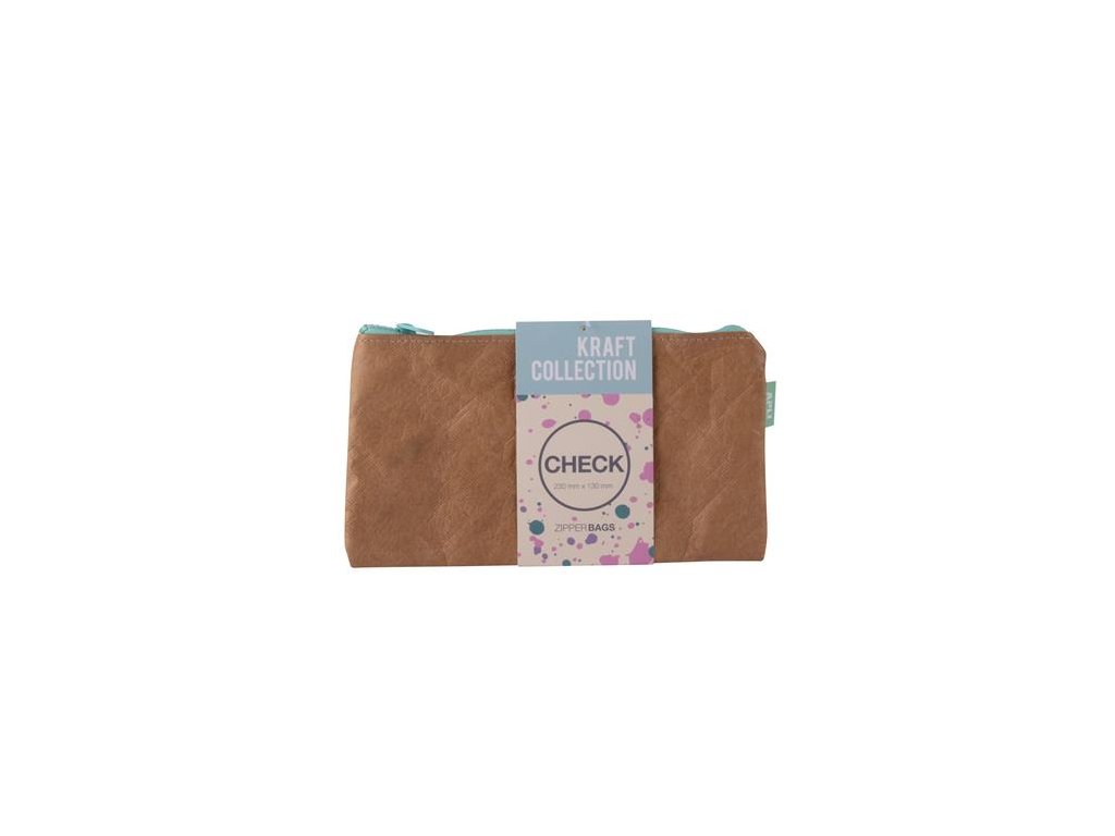Puzdro na drobnosti ako súčasť novej kolekcie "Kraft". - vynikajúce na uloženie dokumentov, kresieb, telefónu alebo iných predmetov (papiernictvo, lieky a pod.). - s unikátnou textúrou koženého efektu a farebným zipsom - je vyrobený zo špeciálneho a odolného materiálu - ľahko sa čistí, vodeodolný - materiál: polyetylén s vysokou hustotou - rozmer: DL rozmer šeku (230 mm x 130 mm) - zips rôznych farieb, farbu nemožno vybrať - farby zipsov: tyrkysová modrá, fialová, ružová, smaragdovo zelená v pastelových odtieňochDodatočné parametre
