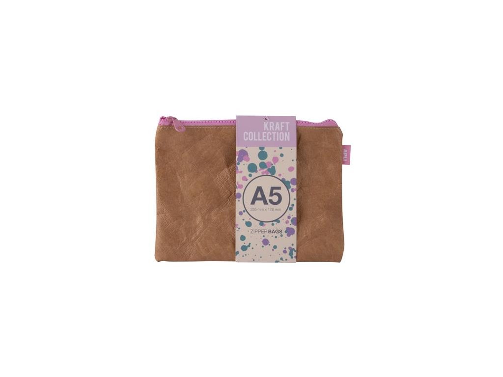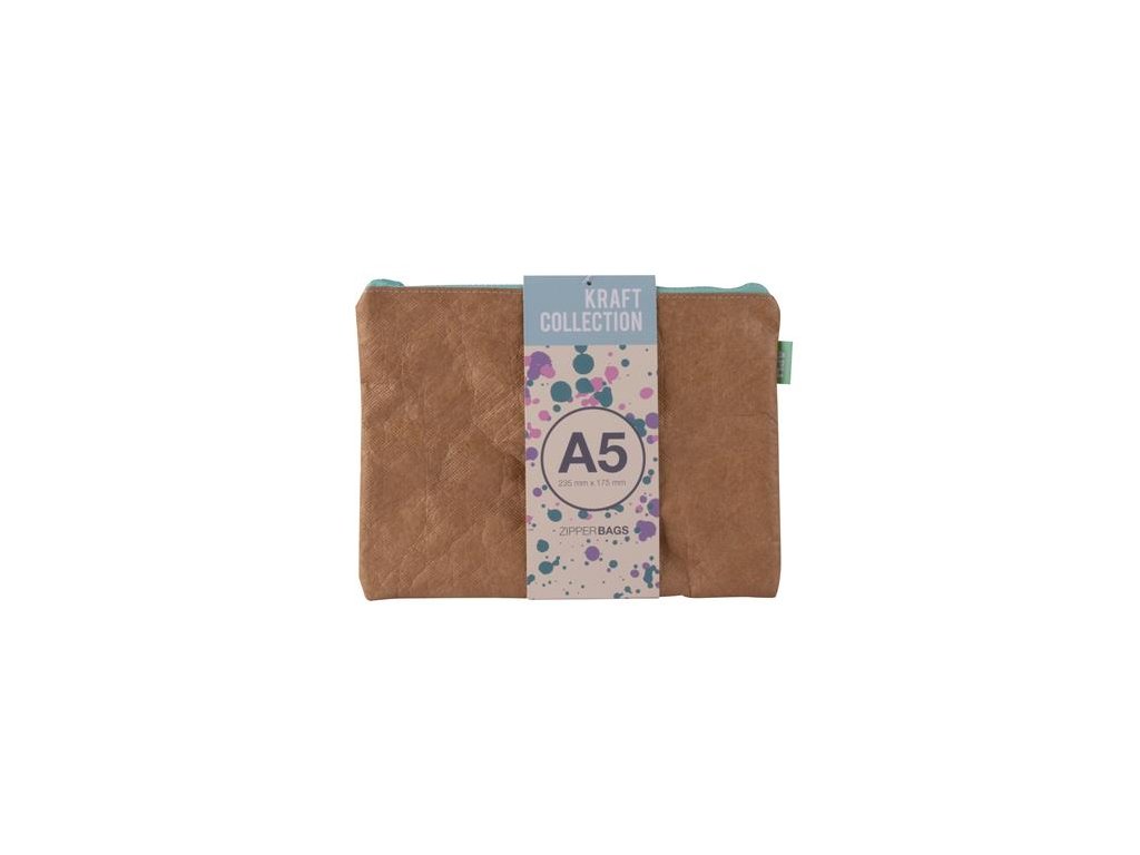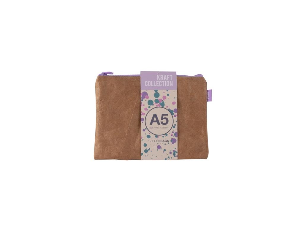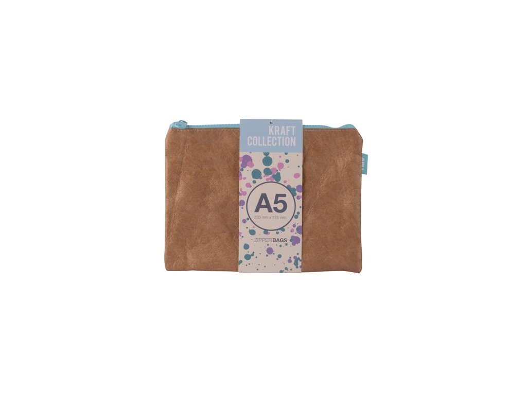 Puzdro na drobnosti ako súčasť novej kolekcie "Kraft". - vynikajúce na uloženie dokumentov, kresieb, telefónu alebo iných predmetov (papiernictvo, lieky a pod.). - s unikátnou textúrou koženého efektu a farebným zipsom - je vyrobený zo špeciálneho a odolného materiálu - ľahko sa čistí, vodeodolný - materiál: polyetylén s vysokou hustotou - rozmer: A5 (235 mm x 175 mm) - zips rôznych farieb, farbu nemožno vybrať - farby zipsov: tyrkysová modrá, fialová, ružová, smaragdovo zelená v pastelových odtieňochDodatočné parametre