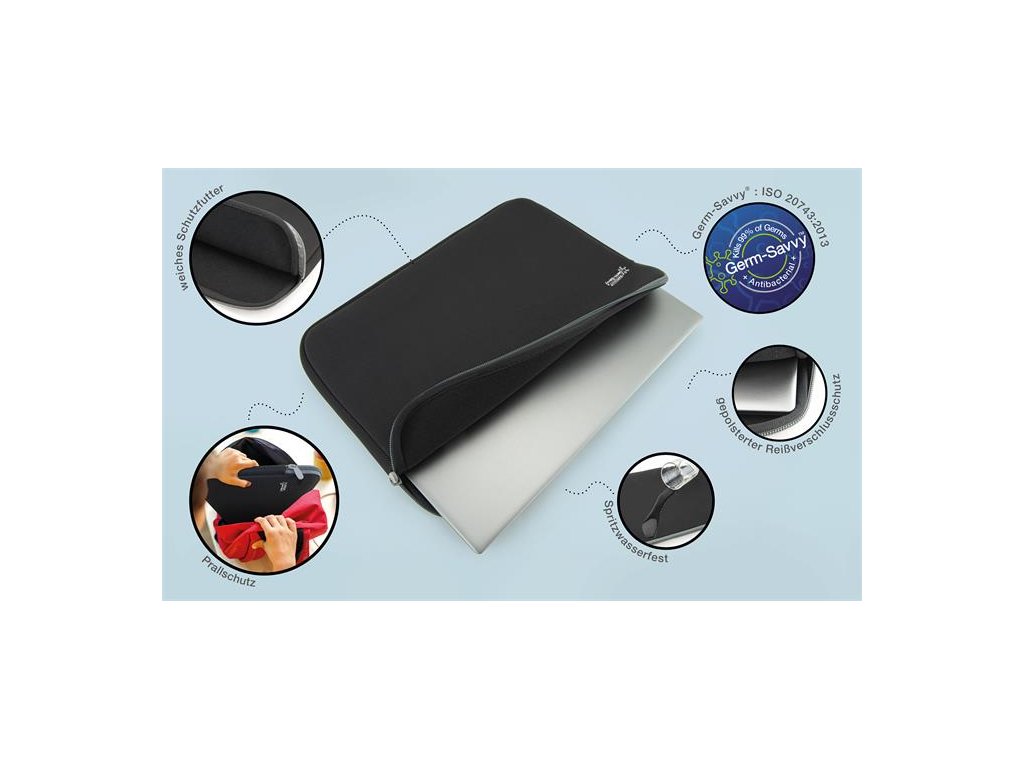 Polstrované puzdro na notebook z neoprénového materiálu, ktoré chráni notebook, tablet a ich príslušenstvo pred nechceným poškodením a poškriabaním. ošetrené antibakteriálnym materiálom Germ-Savvy® (na báze iónov striebra a zinku), ktorý inhibuje a zabíja 99 % baktérií ľahký, odolný a tenký dizajn ľahko sa prenáša, či už v ruke alebo v batohu neoprénový materiál prémiovej kvality, ktorý chráni pred prachom a vlhkosťou vhodné na každodenné použitie pri cestovaní moderný dizajn, zapínanie na zips na pozdĺžnej strane ideálne na uloženie notebookov s max. veľkosťou 14" obalový mateiál bez plastov vnútorné rozmeyr: 340 mm x 255 mm (Š x V) Značka: RAPESCO Výrobca: Rapesco-Tacwise BV Adresa: Kraijenhoffstraat, 137A, 1018RG Amsterdam, Netherlands Web: www.rapesco.com Email: support@rapesco-tacwise.nlDodatočné parametre