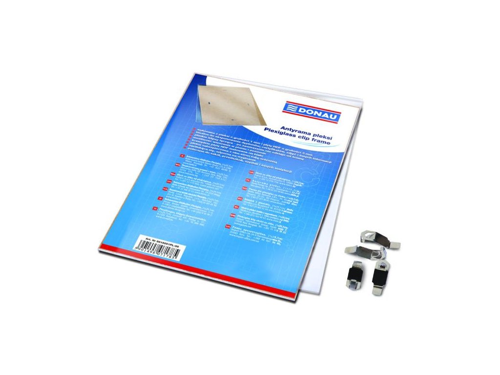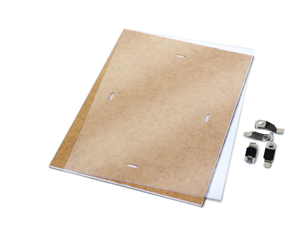 Ideálny pomocník na rýchle zarámovanie diplomov, certifikátov a iných dokladov. Vrchná časť plexisklo hrúbky 1 mm, z každej strany potiahnuté ochrannou fóliou, spodná časť 3 mm plát HDF. Možnosť vešania na výšku alebo na šírku. Spojovacie klipy po zavesení od steny neodstávajú. Jednoduchá montáž.Rozmery: 400 x 500 mm