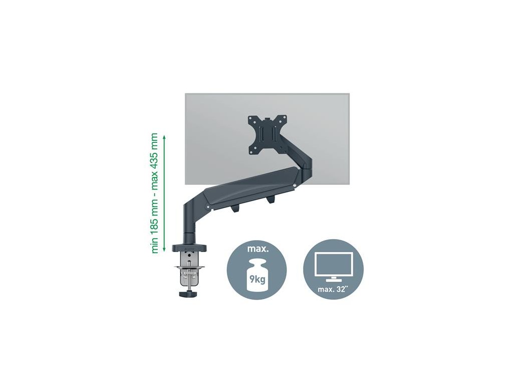 - Jednoduché rameno s pružinou na ľahké nastavenie výšky monitora (185–435 mm)