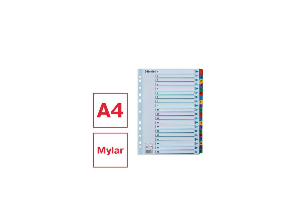 Register, kartón, A4, 1-20, ESSELTE "Mylar"