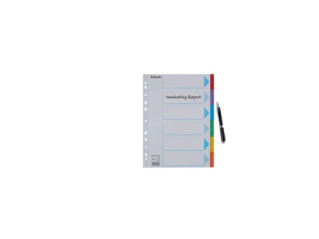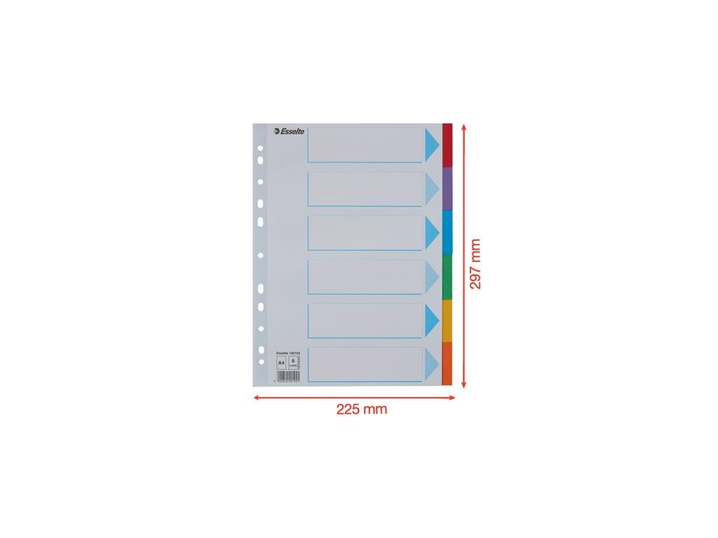 Register, kartónový, A4, 6 dielny, popisovateľná predná strana, ESSELTE "Standard", farebný