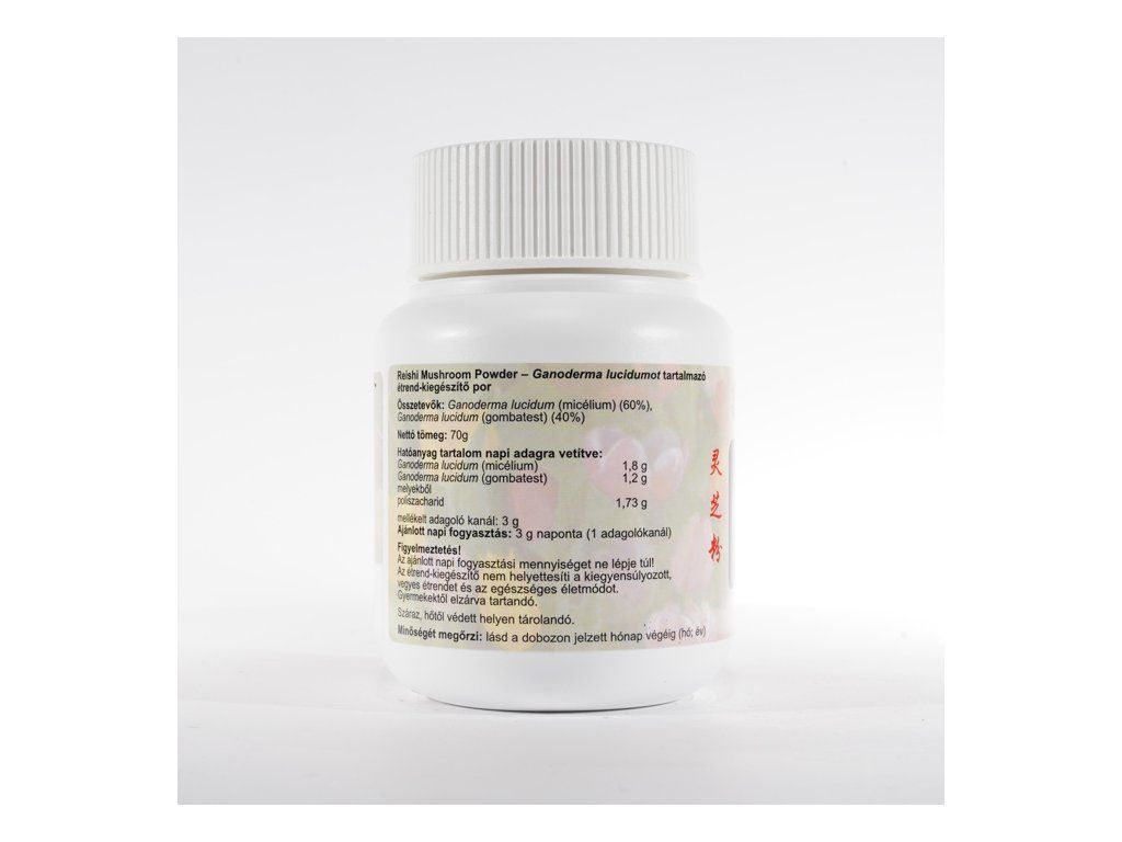 Vyvážená zmes mycélia a huby Ganoderma lucidum ( Lesklokôrovka obyčajná). Táto forma instantnej práškovej zmesi šetrí čas užívateľa a je vhodná pre všetkých spotrebiteľov.