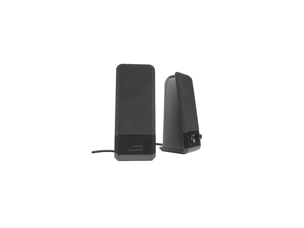 Dvojica USB reproduktorov značky Speedlink sa hodí na každý písací stôl. Úzky tvar nezaberie miesto a zachováva si špičkovú stabilitu spojenú s moderným dizajnom. Okrem regulácie hlasitosti a vypínania v jednom tlačidle je samozrejmosťou tiež 3,5 mm výstup pre slúchadlá. Hlasitosť v slúchadlách je možné ovládať priamo na reproduktore. Napájanie cez USB konektor Výstup na 3,5 mm jack pre slúchadlá Ovládanie slúchadiel priamo na reproduktore Univerzálny dizajn Speedlink pre každý písací stôl alebo stolík s televíziou Stabilná konštrukcia nezaberie príliš miesta 70x80x185 mmDodatočné parametre