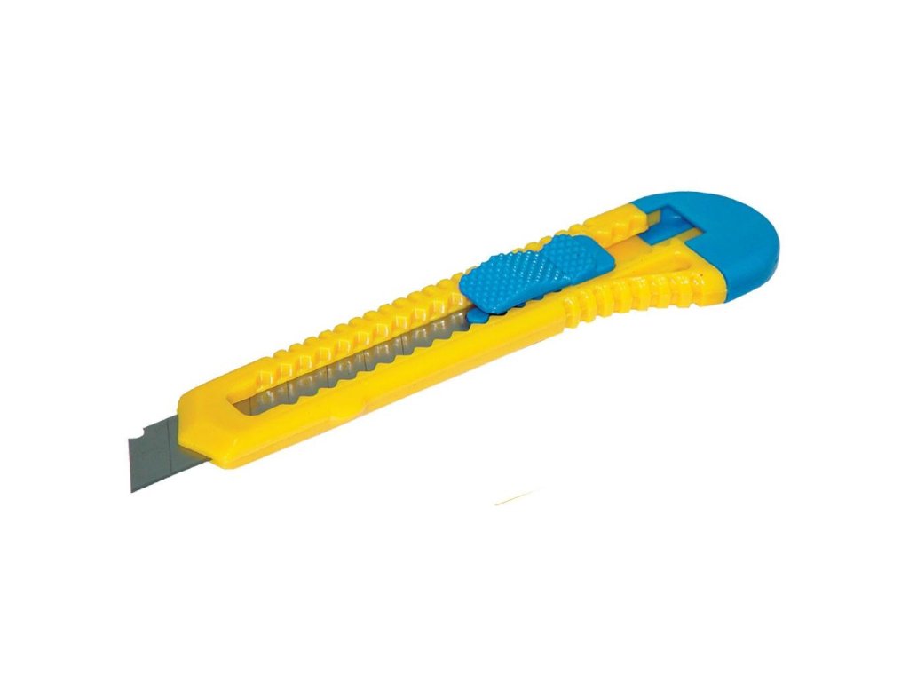Rezač v plastovej úprave na intenzívne rezacie práce. Šírka čepele 18 mm. Farba žltá/nebeská modrá. Väčšie balenie 12 ks.Dodatočné parametre