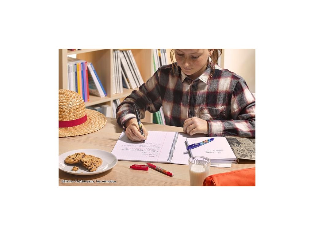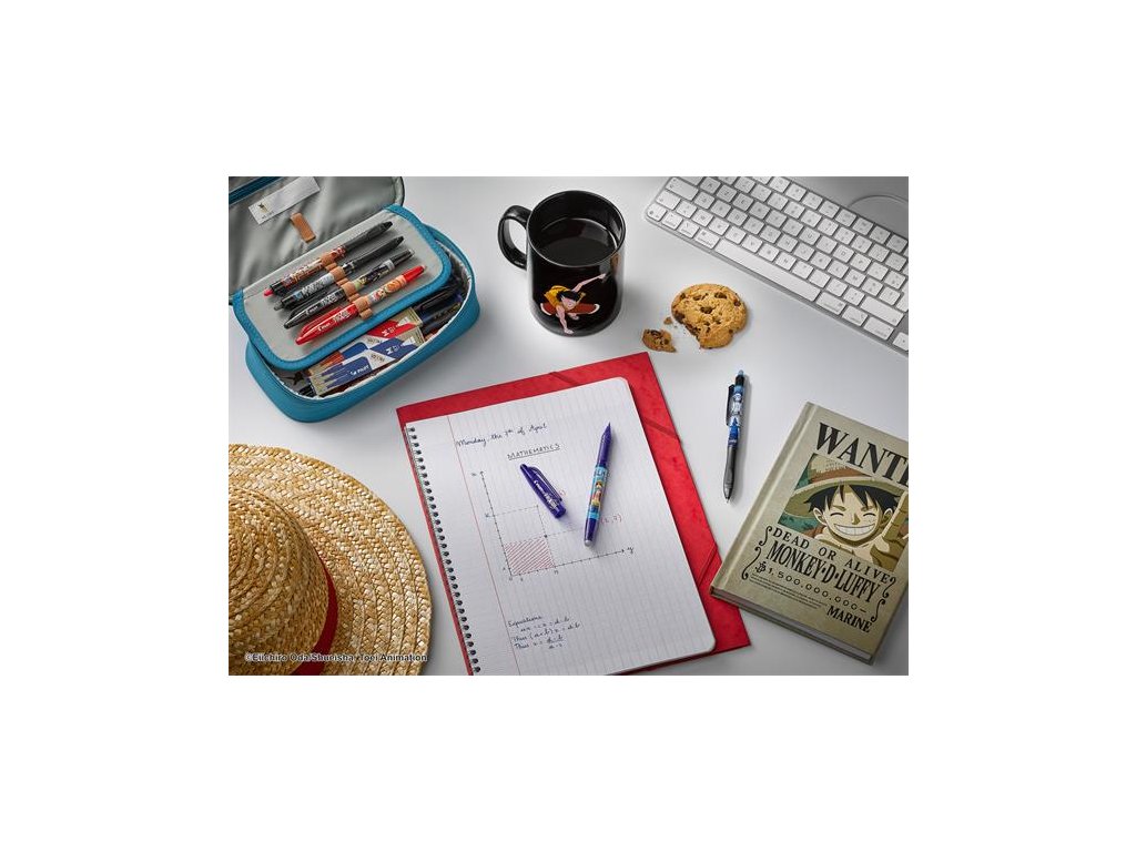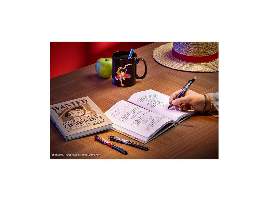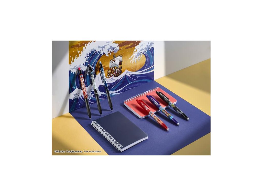 Vďaka patentovanému tepelne citlivému atramentu Pilot umožňuje efektívne a čisté písanie.-trojuholníkový spodný dizajn pre ešte pohodlnejšie písanie (FriXion Ball+) -decentné a elegantné matné čierne telo -prvé vymazateľné a ekologické pero -s unikátnou nálepkou One Piece