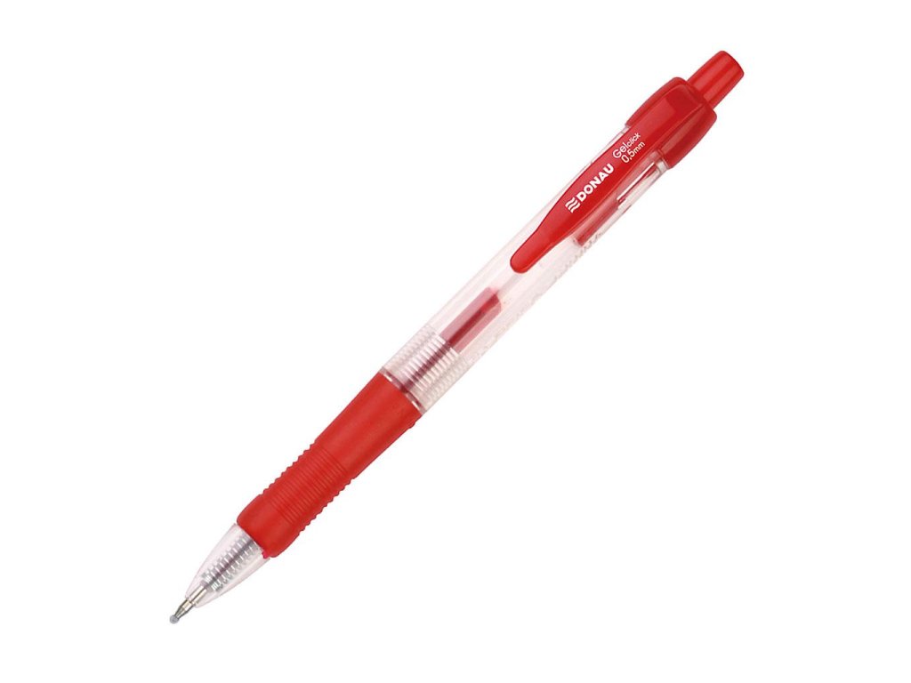 Klikací roller s plastovým klipom a gumeným úchytom vo farbe tuhy. Plnený netoxickým pigmentovým vode odolným atramentom. Telo z plastu, guľôčka 0,5 mm, šírka stopy 0,25 mm, dĺžka stopy 400 m. Väčšie balenie 12 ks. Náhradná náplň obj. kód DO734604.Farba: červená
