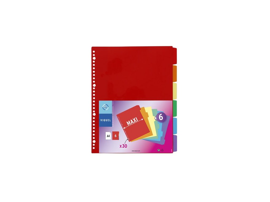 Rozraďovač, plastový, A4 Maxi, 6 x uško, VIQUEL