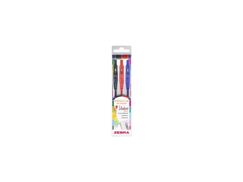Sada gélových pier, 0,33 mm, s tlačidlom, ZEBRA „Sarasa Clip Urban Vibes“, 3 rôzne farby