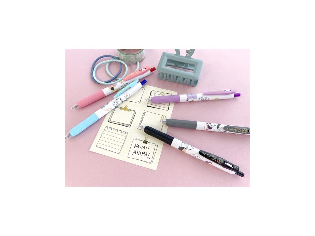 Sada gélových pier, 0,33 mm, stláčací mechanizmus, ZEBRA "Sarasa Clip Kawai Animal"